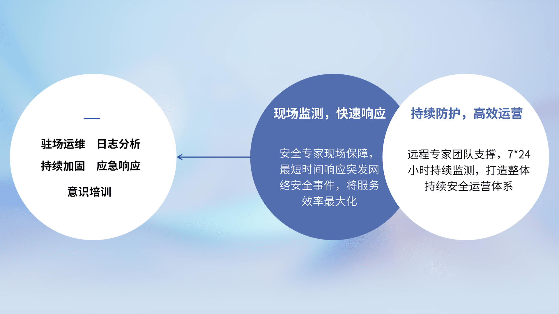 针对客户行业特性,,,,提供专属的一站式安全管理服务,,帮助客户全面感知网络空间威胁,,,通过安全专家的线上、、、、线下防护支持,,,,实现风险闭环,,,,将安全保障常态化,,为客户打造常态化安全运维运营服务。。。。